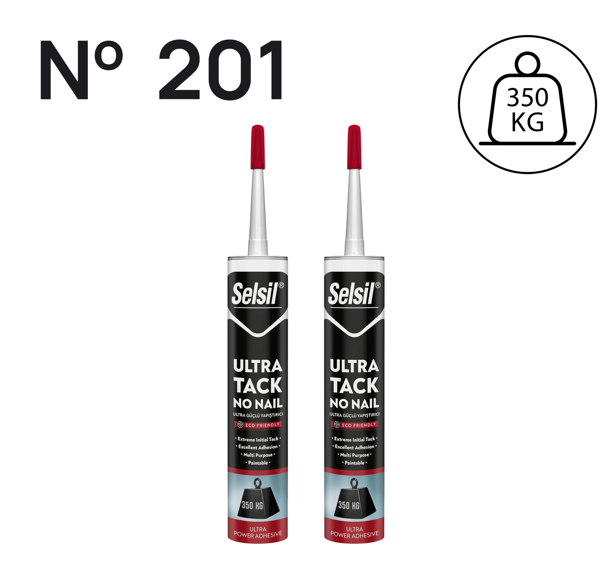 Selsil Ultra Tack Yapıştırıcı, çok yüksek tutunma gücüne sahip bir montaj yapıştırıcısıdır. Doğru uygulandığı takdirde 350kg taşıma gücüne sahiptir.